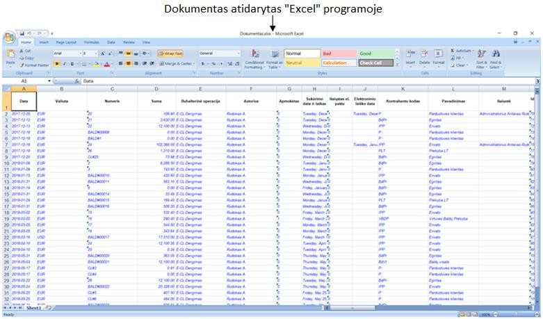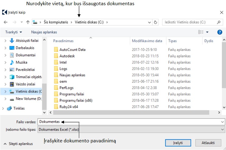 Programa sukuria "Excel" dokumentą nurodytoje vietoje.
