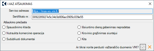 Norint vežimą atšaukti, reikia spausti šį mygtuką ir pasirinkti atšaukti važtaraštį: