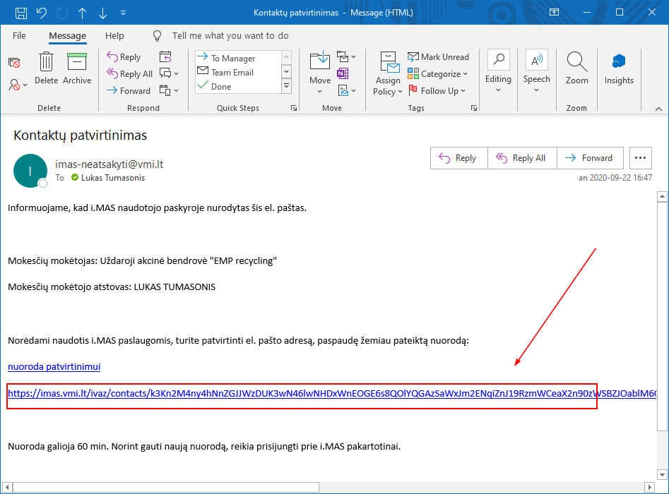 Pirmą kartą atsidarius i.VAZ, sistema paprašys atnaujinti savo duomenis – įveskite savo darbo el. pašto adresą ir telefono numerį bei išsaugokite. Tada gausite patvirtinimo el. laišką, kuriame paspauskite nuorodą: