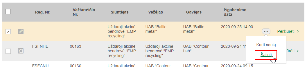 Norint patvirtinti rengiamą važtaraštį, reikia jį atsidaryti ir paspausti mygtuką Patvirtinti. Norint pašalinti važtaraštį, reikia jį susirasti važtaraščių sąraše ir pašalinti:
