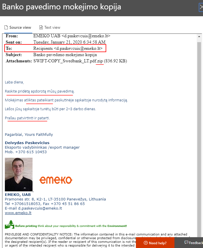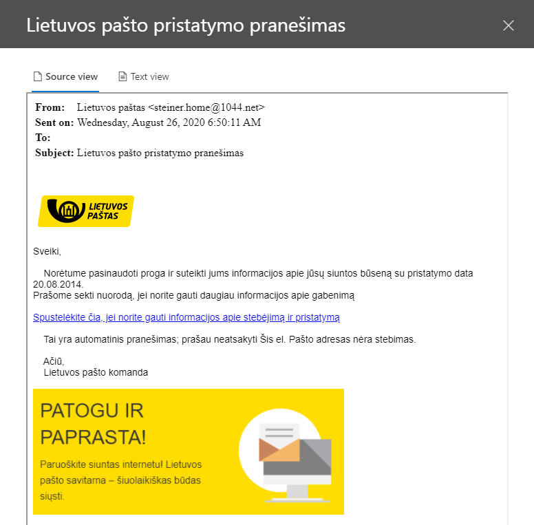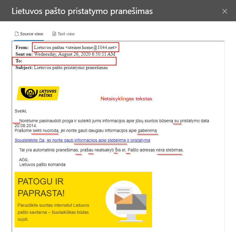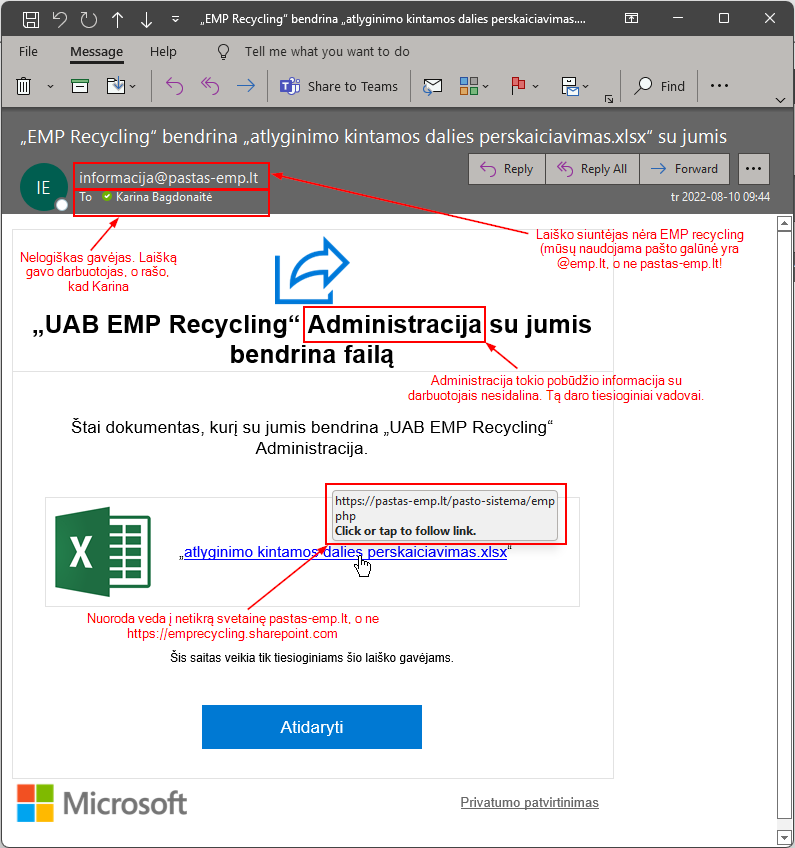 - Atkreipsiu dėmesį, kad kenkėjiški laiškai tampa vis sunkiau atpažįstami - juose naudojama taisyklingesnė lietuvių kalba, prisidengiama Lietuvoje veikiančių įmonių pavadinimais, gražiau suformatuoti ir t.t.