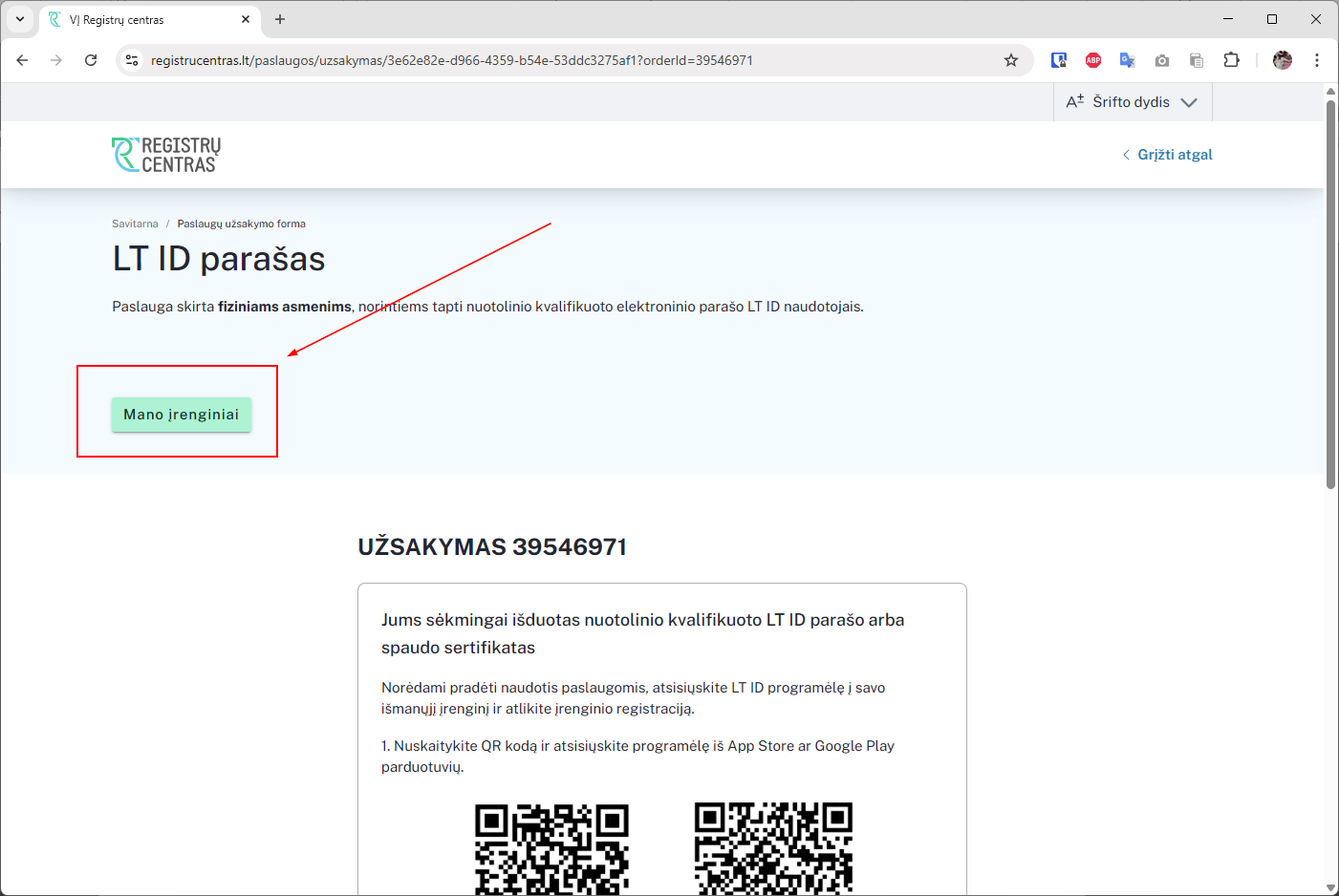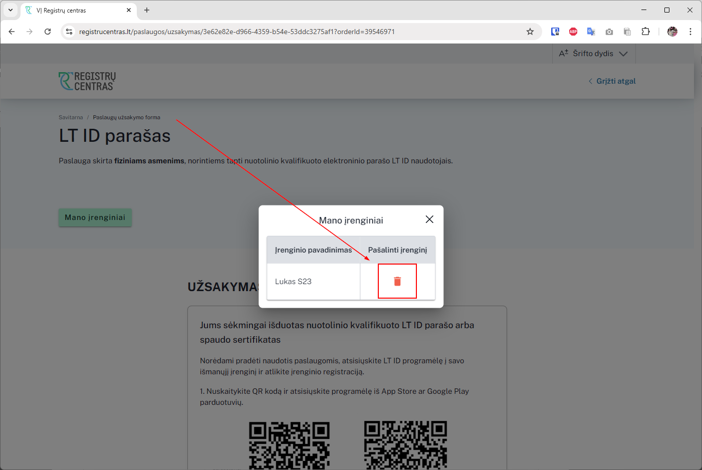 LT ID įrenginių pašalinimas savitarnoje