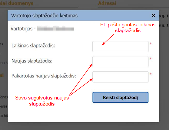 - Vartotojo el. pašto adresas: įvesti savo el. pašto adresą